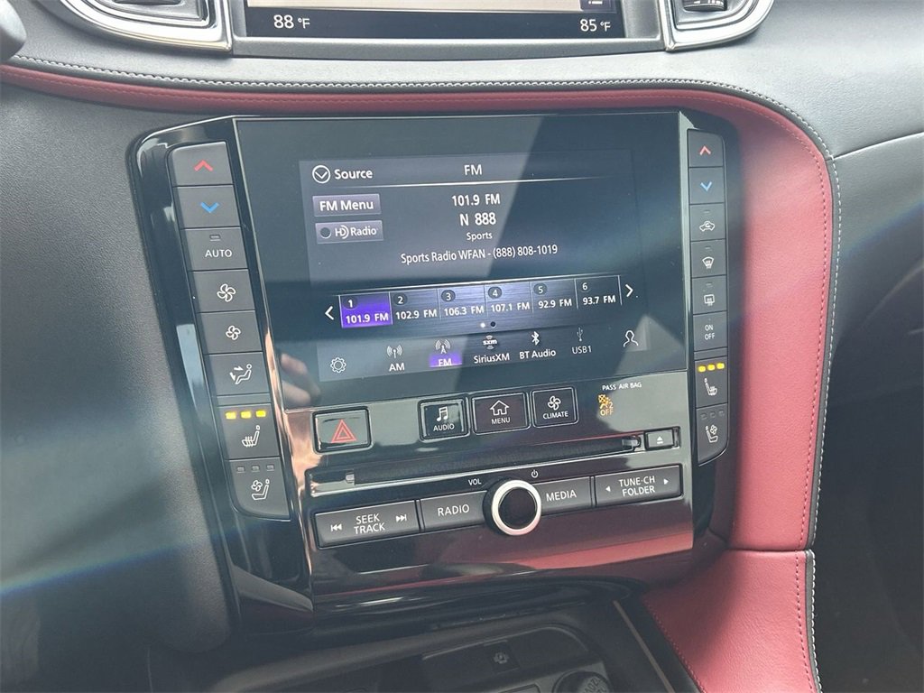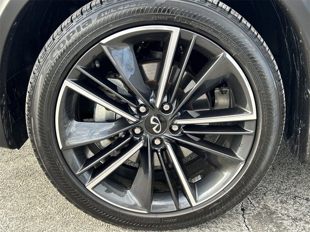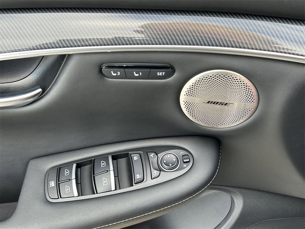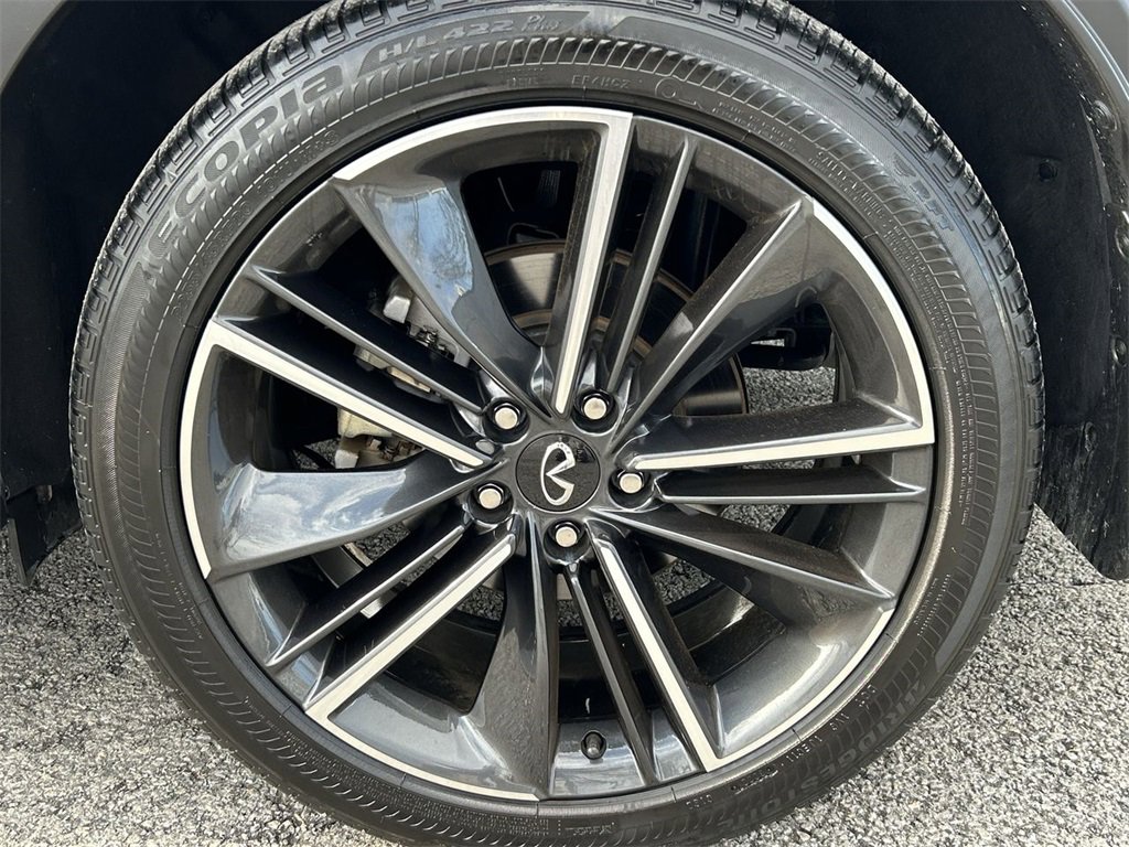 INFINITI Certified Pre-Owned Certified, 12 Speakers, 4-Wheel Disc Brakes, 5.846 Axle Ratio, ABS brakes, Air Conditioning, Alloy wheels, AM/FM radio: SiriusXM, Auto High-beam Headlights, Auto-dimming Rear-View mirror, Automatic temperature control, Bose Premium Audio System, Brake assist, Bumpers: body-color, CD player, Climate Controlled Front Bucket Seats, Delay-off headlights, Driver door bin, Driver vanity mirror, Dual front impact airbags, Dual front side impact airbags, Electronic Stability Control, Emergency communication system: INFINITI InTouch (1-year complimentary trial), Floor Mats, Four wheel independent suspension, Front anti-roll bar, Front Bucket Seats, Front Center Armrest, Front dual zone A/C, Front fog lights, Front reading lights, Fully automatic headlights, Garage door transmitter: HomeLink, Heated door mirrors, Heated front seats, Heated steering wheel, Illuminated entry, Illuminated Kick Plates, Knee airbag, Leather Shift Knob, Leather steering wheel, Literature Kit, Low tire pressure warning, Memory seat, Navigation system: INFINITI InTouch Navigation, Occupant sensing airbag, Outside temperature display, Overhead airbag, Overhead console, Panic alarm, Passenger door bin, Passenger vanity mirror, Power door mirrors, Power driver seat, Power Liftgate, Power moonroof, Power passenger seat, Power steering, Power windows, Radio data system, Rear anti-roll bar, Rear reading lights, Rear seat center armrest, Rear side impact airbag, Rear window defroster, Rear window wiper, Remote keyless entry, Security system, Semi-Aniline Leather-Appointed Seat Trim, Speed control, Speed-sensing steering, Speed-Sensitive Wipers, Splash Guards (Set of 4), Split folding rear seat, Spoiler, Steering wheel mounted audio controls, Tachometer, Telescoping steering wheel, Tilt steering wheel, Traction control, Trip computer, Turn signal indicator mirrors, Variably intermittent wipers, Ventilated front seats, Wheels: 20" Black Painted Machine Finished.